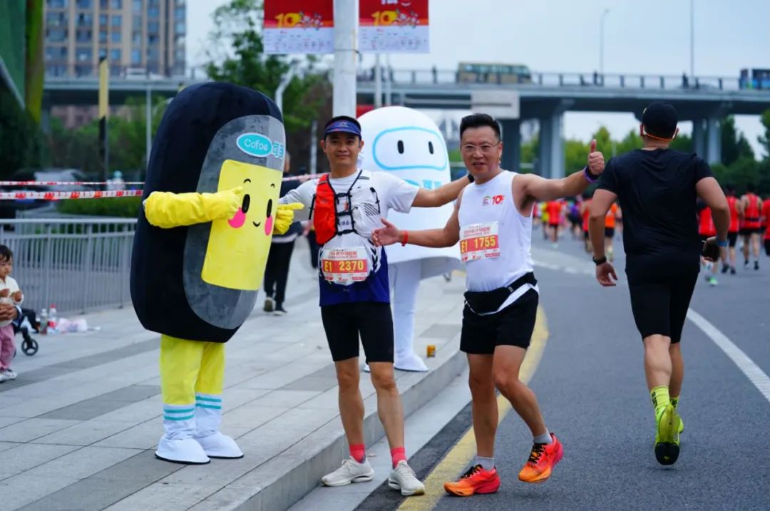 *長(zhǎng)馬選手經(jīng)過可孚醫(yī)療戶外廣告牌,可孚醫(yī)療工作人員全程為選手加油打氣。